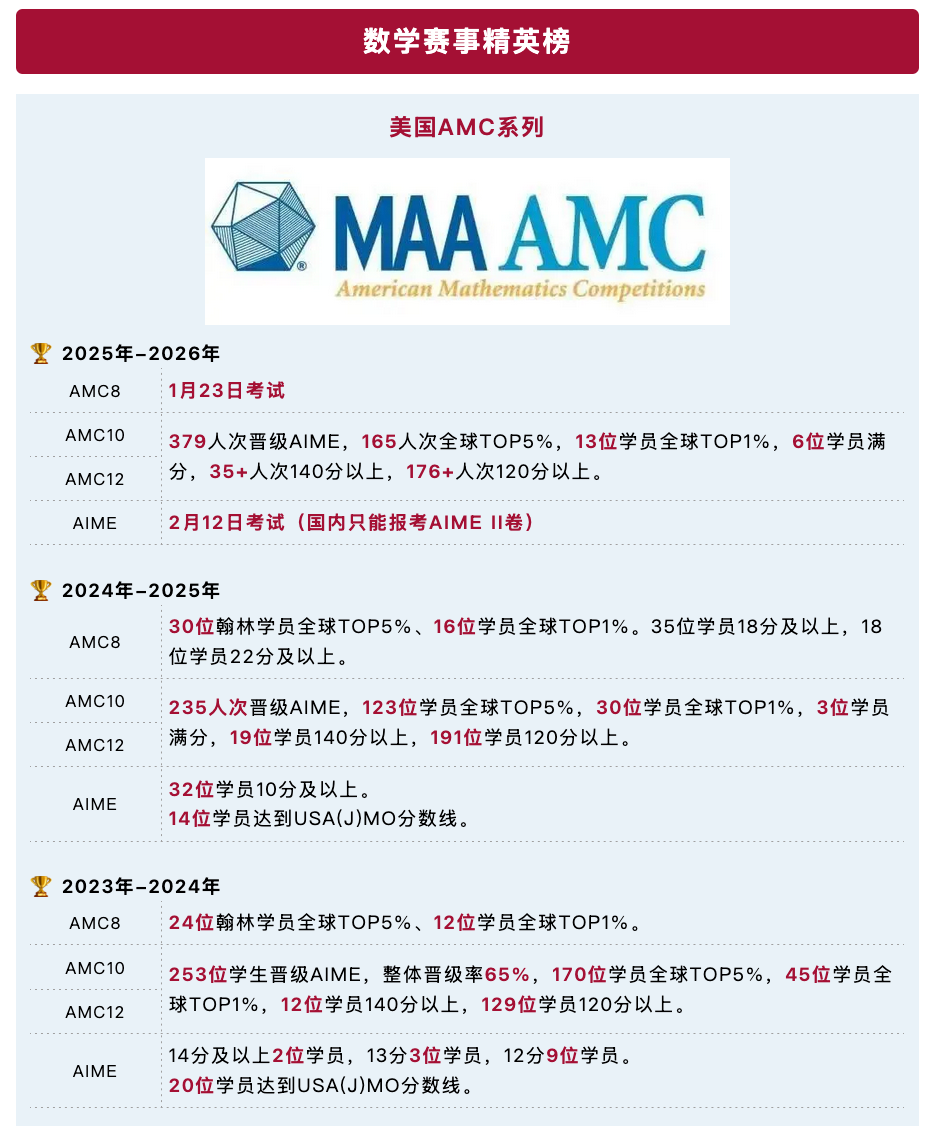重点中学筛选尖子生时非常看重数学能力:AMC10 的难度高于校内考试,能够快速筛选出数学素养突出的学生。