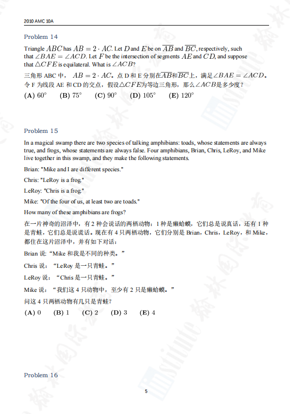 还可免费下载AMC10竞赛历年真题+答案+详细解析高清pdf⇓