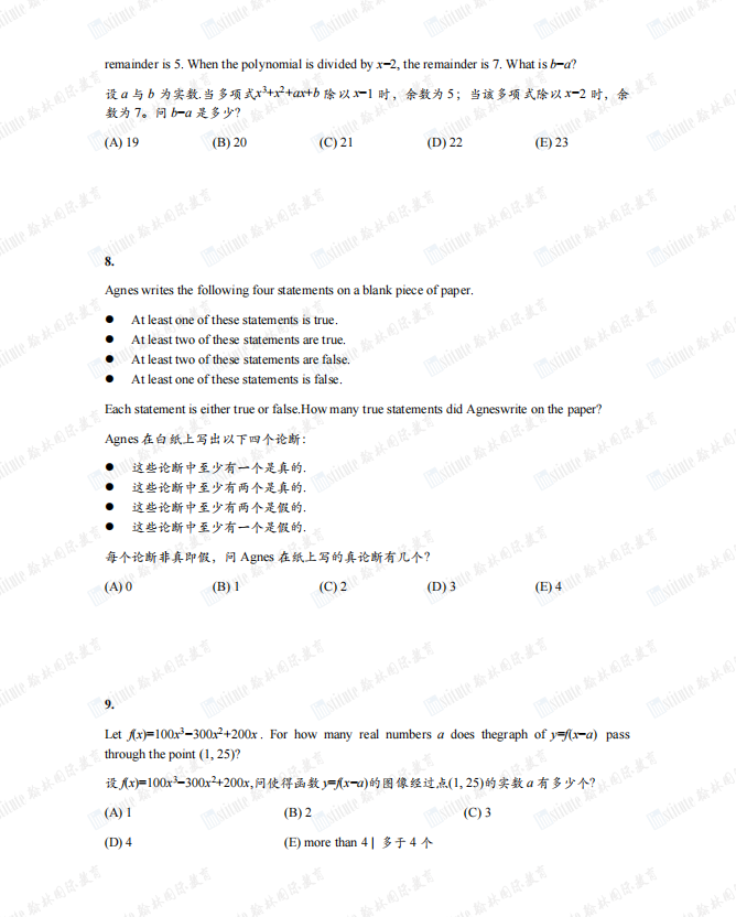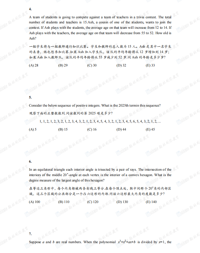 以上仅展示2025年 AMC10 A卷 部分真题,完整版扫描文末二维码即可免费领取