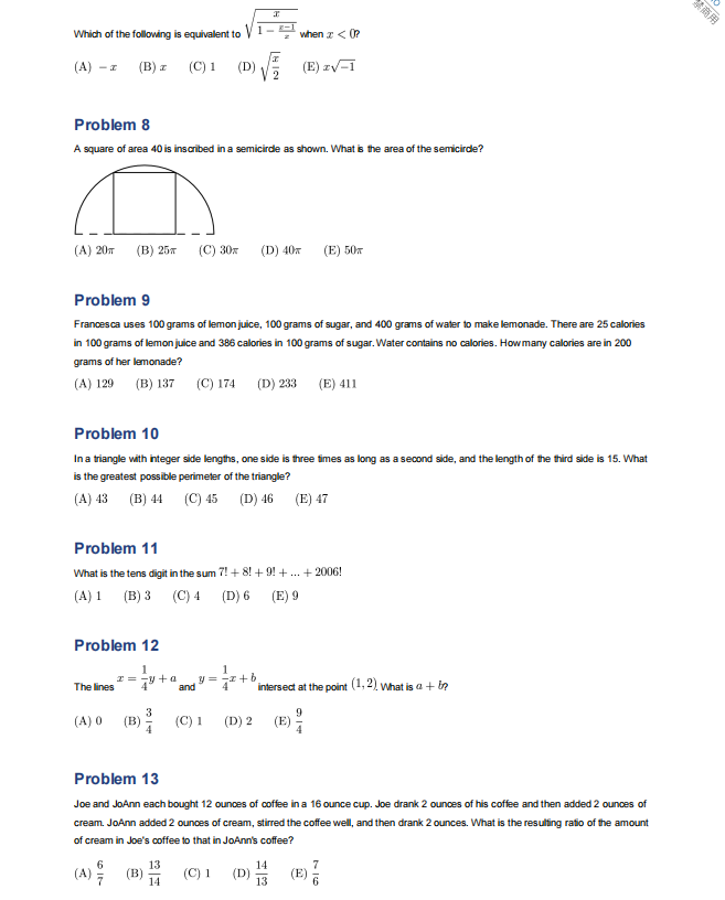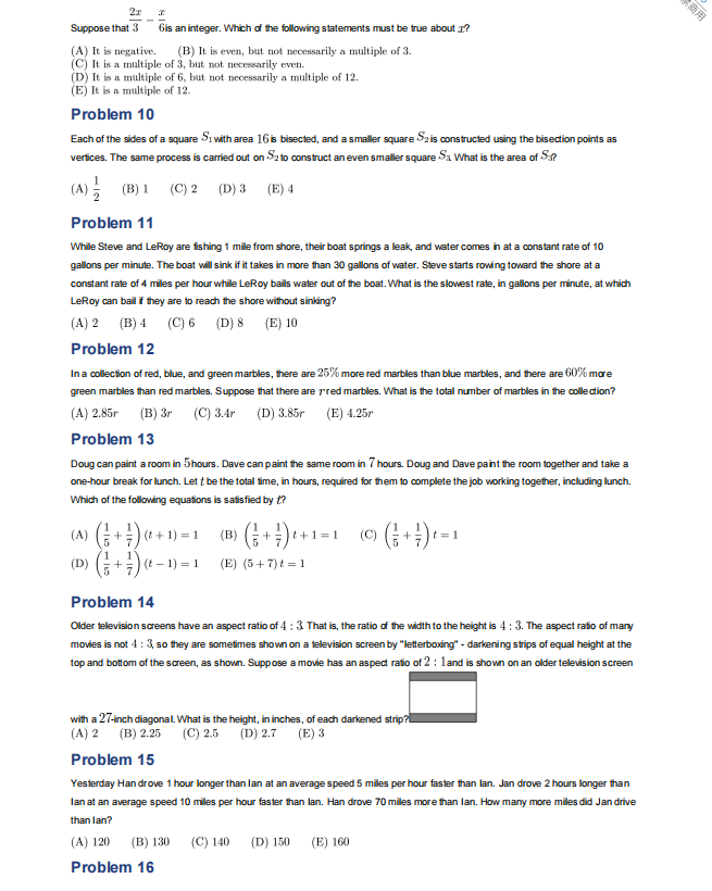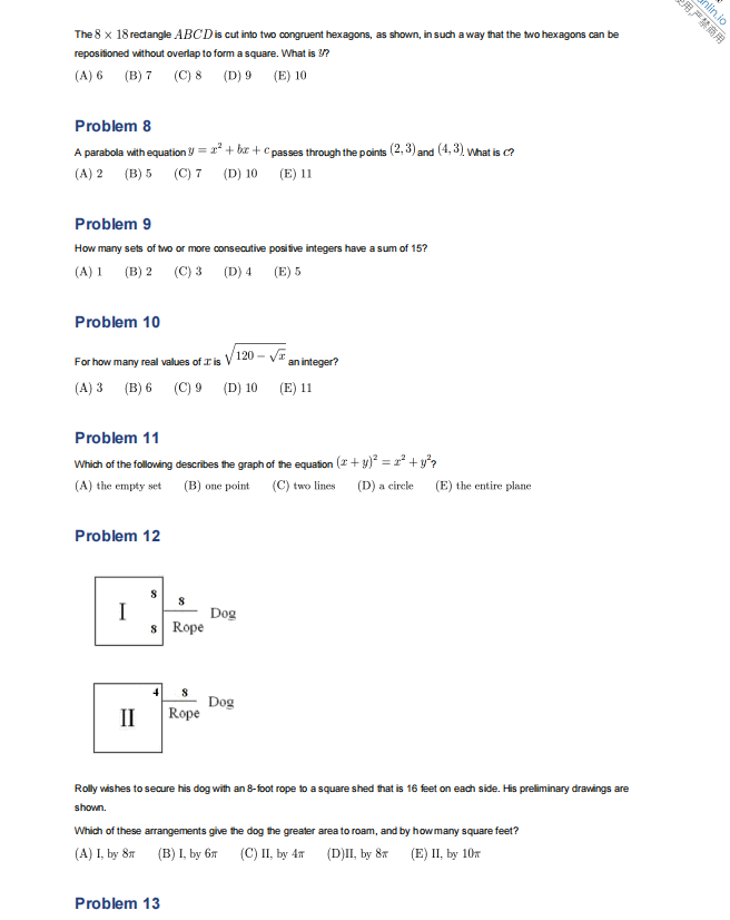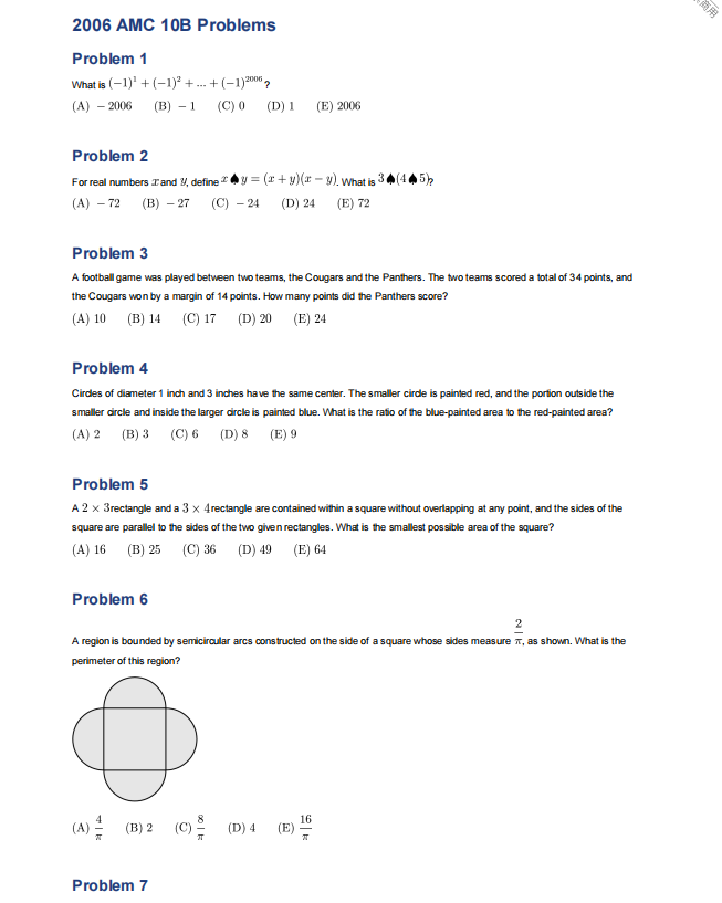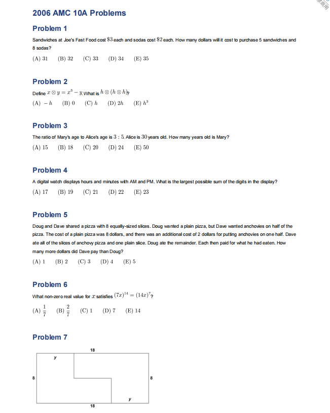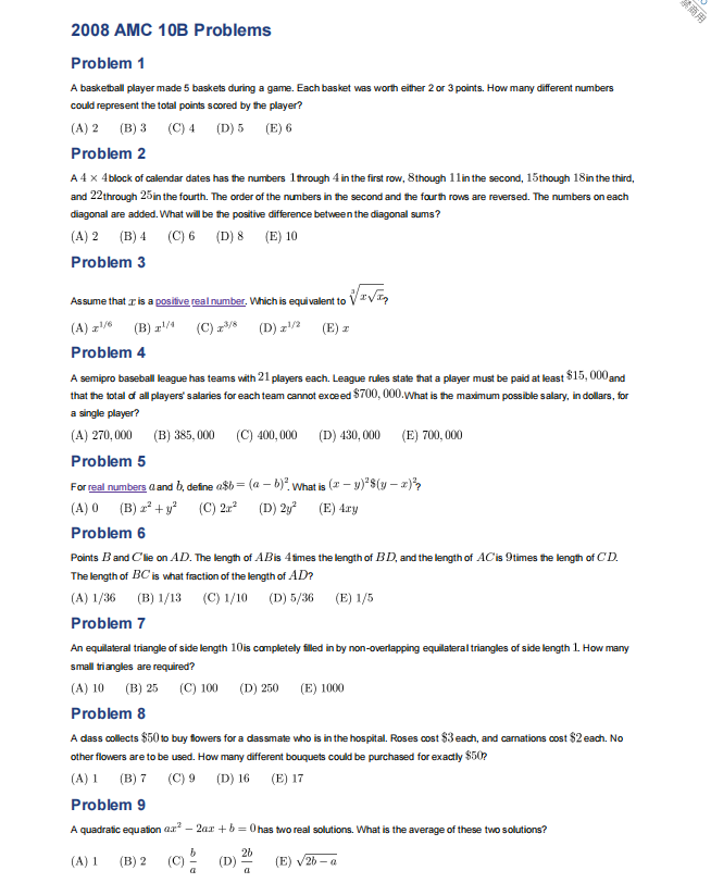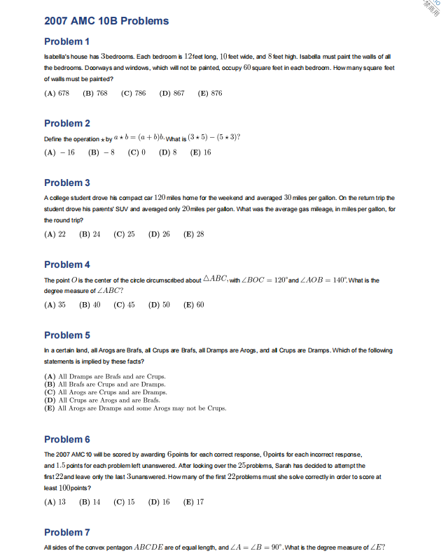 AMC10:增加了多项式因式分解、取整函数等竞赛技巧,要求学生具备更高的抽象思维能力和解题技巧。