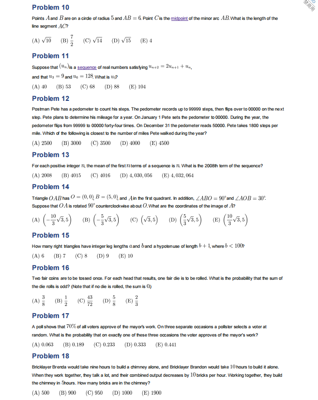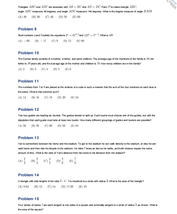 AMC10:需要掌握圆幂定理、立体几何坐标系等进阶内容,并能灵活运用这些知识解决复杂问题。