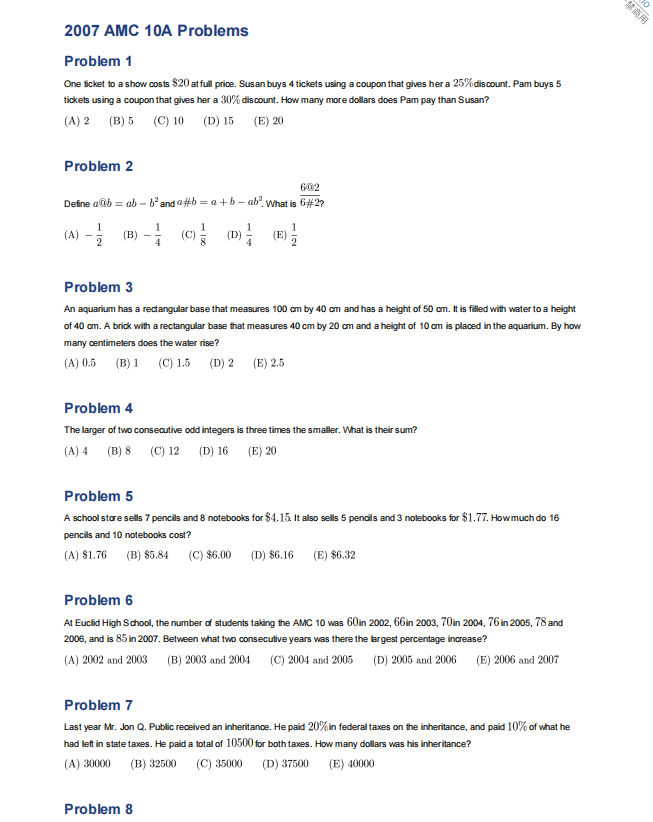 AMC10:数论与组合占总题量的约30%,要求学生额外学习质因数分解、排列组合等内容,并能在实际问题中应用这些知识。